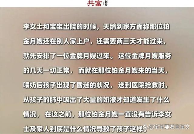每一个孩子都是家庭的宝贝,他们的健康成长是我们共同的愿望。希望通过这次事件,能让更多人意识到月嫂行业的重要性和责任,也希望所有的孩子都能在爱和关怀中茁壮成长。